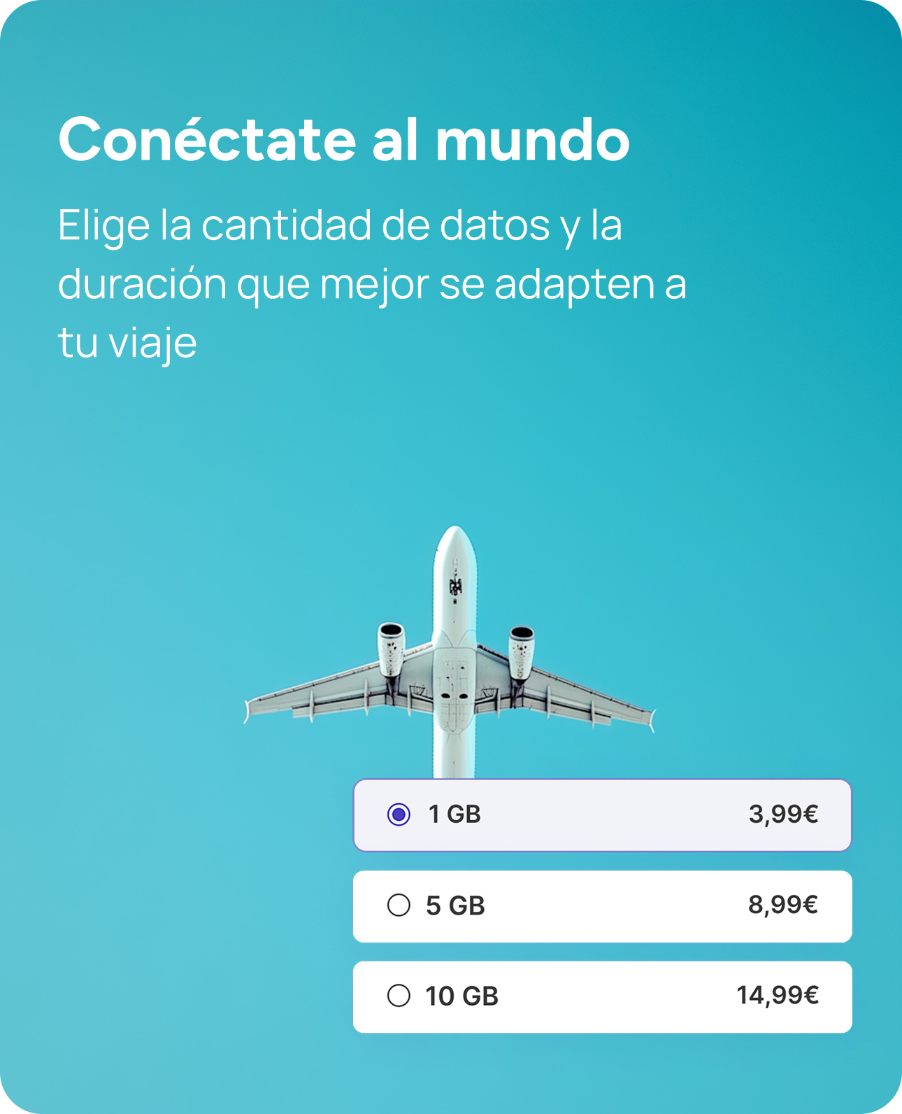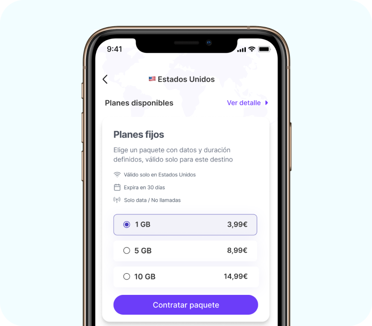 Elige un plan de datos para tu próximo destino. Todo es prepago, así que sin costos ocultos.