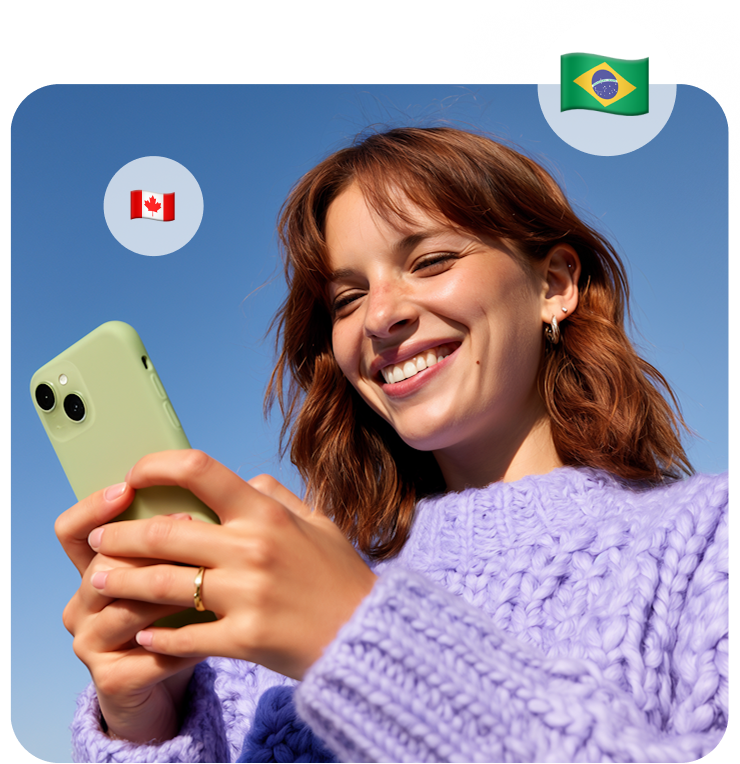 Viaja por varios países de una misma región con un solo plan de 30 días. Sin cambiar de eSIM ni preocuparte por cargos extras.
