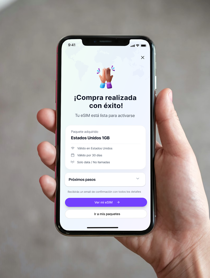 Puedes contratar un plan local directamente desde tu dispositivo y conectarte a operadores del país. evitas tarifas internacionales inesperadas.